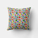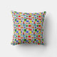 Dekorativ kudde har en Bauhaus-design av ett rutnät med rutor och rektanglar i rött, grönt, blått, orange, ljusblått, gult och rött.