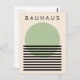 En minimalistisk modern konstdesign i Bauhaus stil i en grönt sol med svart vågrät linjer mot beige bakgrund.