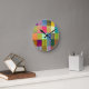 Den här klockan har en Bauhaus-design av linjer med olika färg-formningsboxar. Ljus, färgstark och roligt!
