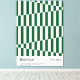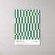 En djärv och grafisk Bauhaus 1919–1923 konsttryck med ett dynamiskt diagonalt randigt mönster och ett schackbrädemönster i rikt mörkt skogsgrönt och vitt. Den optiska illusionen av skiftande perspektiv genom konvergerande ränder ger denna pjäs en hypnotisk, arkitektonisk energi med rötter i Bauhaus designprinciper. Mörkgrönt är en av de mest sökta inredningsfärgerna i Australien och USA för 2025, vilket gör denna geometriska randiga affisch till ett mycket trendigt val för moderna vardagsrum, hemmakontor och maximalistiska galleriväggar.