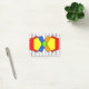 De här PostIT-anteckningarna har en Bauhaus-design med överlappande pentagoner, färgad i rött, gult, orange, blått och grönt med svart prickat linjer som bakgrund.