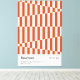En livfull och energisk Bauhaus 1919–1923 konsttryck med en djärv diagonal rand och schackbrädemönster i levande röd-orange och vitt. De dynamiska konvergerande ränderna skapar en känsla av optisk rörelse och modernistisk rytm, som perfekt fångar Bauhausandan av djärv, funktionell skönhet. Röda och orangea nyanser är på uppgång som en trendig färg inom inredningsdesign på Pinterest i både Australien och USA inför 2025, vilket gör detta geometriska randtryck till ett kraftfullt val för vardagsrum, matrum och samtida galleriväggar.