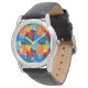 Den här manarna har en Bauhaus-design av slumpmässiga former i blått, teal, gult, rött och orange.