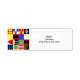 Dessa returetiketter har en Bauhaus-design av primärt färg och former. Roligt och djärv.