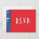 Detta svarskort i storleken 4.25"x5.5" har en modern och djärv look där HIS och HIS blå smokingar med blå flugor lyfter mot en djärvt röd bakgrund, dessa koordinerar med TheMarryingType's LGBT Bauhaus Smoking Bröllopsserie av inbjudningar och mycket mer. #zazzlemade
