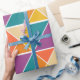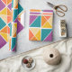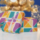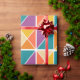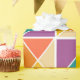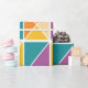 Denna papper har en Bauhaus-design av fyrkanter av trianglar i nyanser av orange, gult, lila och blått.