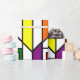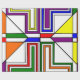 Denna papper har en Bauhaus-design av linjer, trianglar, diamanter och fyrkanter som skapar ett nedfläckad glas som ser ut i primär och sekundär färg.