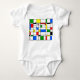 Denna barnkroppsdräkt har en Bauhaus-design i primärfärger som ser ut som glasmålning. Färgglad, djärv, rolig!