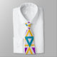 Den här nektien har en Bauhaus-design som består av upprepade trianglar i guld, turkos, teal, lila och lätt guld. Om du tycker om designen men föredrar olika färg, säg mig.