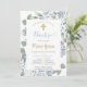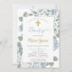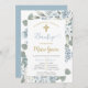 Dusty Blue Blommigt Baptism inbjudan på spanska. Invación de Bautizo para niño