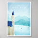 Vintage stil-reseaffisch för Neuschwanstein Castle i Bayern. Den här vintern illustrerar Europas vackraste sagoläge och inbegriper figurer som är skrivet på ett fruset sjö och berg i avstånd. Texten lyder Besök Bayern. Ursprungligt hand plockade och digitalt illustrerad av Henry Rivers för Travel Poster Co.