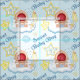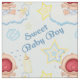 Adsible Bawling Pojke sitta på ett fluffy-moln med baby flaska, fotavtryck och andra på pastellblått och vitt polka-punktbakgrund. Roligtens stjärnaccenter. Texten säger Sweet Pojke. Design finns även i flicka-versionen.