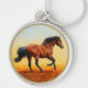 Bay Horse Galloping Rund Silverfärgad Nyckelring