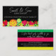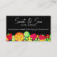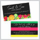 Citrusfrukter med orange, citron och kalk med ljusröda jordgubbar och några prydnadsblommor i abstrakten på detta affärskort till en hembåt, bakverk eller bageribiz, konditor, köksmästare, köksklasser, cateringföretag eller catering, personlig med ditt val av färg och typsnitt.