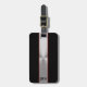 På baksidan kan du lägga till ditt namn och mobilare nummer, vilket kan vara användbart om ditt bagage blir borttappad. På framsidan har mönster lodrät rand. Från lämnat till höger är ränderna ett tjockt svart rand, ett tunt mörk rött rand, ett tjockt metalliskt utseende rand, en tunn mörk rött rand och ett tjockt svart rand. Du kan lägga till ditt monogram vid grund i rand som ser ut som borstat metall. All text är svart och kan redigeras.