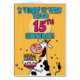 " "Samlas" jag den var din 15th födelsedag!", roligt b-dag koinnehav ett kort för födelsedagtårtahälsning.