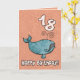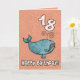 Grattis på födelsedagenval - 18 år gammalt gulligt puckelryggval på för födelsedaghälsning för ålder ett specifikt kort. Inre text: "Hopp har du ett val av en tid!",