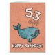 Grattis på födelsedagenval - 53 år gammalt gulligt puckelryggval på för födelsedaghälsning för ålder ett specifikt kort. Inre text: "Hopp har du ett val av en tid!",