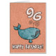 Grattis på födelsedagenval - 96 år gammalt gulligt puckelryggval på för födelsedaghälsning för ålder ett specifikt kort. Inre text: "Hopp har du ett val av en tid!",