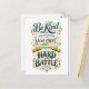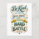 This is a modern postcard that says, "Be kind, for everyone you meet is fighting a hard battle."