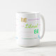 Coffee mug featuring lines and text design saying "Be Liberal Be Free". The design allows you to change the colors of the lines and text in the "Edit this design" section.