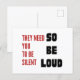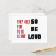 They need you to be silent so be loud. Authoritarians thrive on silence, on complacence, on complicity. There are more of us than there are of them so let's be loud. Design description: On the left, the words, They need you to be silent in restrained red font. On the right, the words, so be loud in a larger bolder black font.