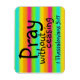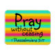 Denna böjliga dubbelriktade magnet är tillverkad på målad regnbågsstrimlad bakgrund med skriften "Raka utan att sluta 1 Thessaloniki 5:17"