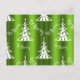 Ett modernt, färglöst julkort med ett mönster av vitt Julgranar på en ljusgrön bakgrund, med orden "Var ärliga" spridd runt dem.