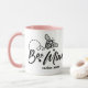 A romantic Valentine's Day mug with play on words pun classic phrases "Be Mine" and "Happy Valentine's Day."
