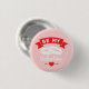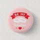 Denna roliga design för Valentine's Day-knappar med bakre fäste visar två vigselringar dekorerade med ett rött banderoll och en hjärta genomskjutet av en pil med texten 'Be My Valentine.' Den rosafärgade bakgrunden kan ändras till valfri färg som passar dina behov.