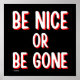 BE NICE ELLER BE BORTA, roligt citattecken Poster