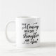 Mugg har tryckt svart typografi med välkänd verterad versalskript från Psalm 31:24, "Be of bra COURAGE and he STRENGTHEN all ye that HOPE in the Lord" i ett löst handskript.