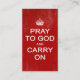 Roligt yet klyftigt "be till guden och bär på" merchandise för den kristna eller religiösa personen. Leka på ord från propagandaaffischen "behållalugn för vintage WWII och bär på". Bekymrad röd bakgrund med vitkronan och bokstäver.