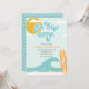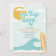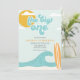 Den stora! Surfing Beach 1st Birthday inbjudan med turkos vågar och orange surfa Board.