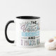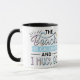 "Beach ringer och jag måste gå" säger texten om mugg. Ordet skrivs ut två gånger i tonerna pastellfärgad rosa, lavender, blue and black.