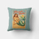 Add a bit of coastal fun to your decor with this sassy teal blue throw pillow This beach babe is enjoying some time out of the water and under the sun. The beautiful vintage inspired pin-up mermaid poses while seductively flicking her jewel green tail. This fantasy twist on a classic retro pinup poster will make you smile! The matching throw blanket is available in my store.