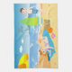 Varje sommardag är en för barn i party på stranden. Flickan solar och njuter av sin frigörelse. Pojken håller en surfboard och redot att ta några vinkara! Stranden är ställe att åka och ha roligt med vänner, kanske fira deras födelsedag också! Glöm inte handduken, hatten och skyddaren sol! Den här handduken kommer att se fin ut i ditt strandkök. Dina barn kommer att kärlek!
