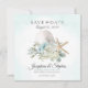 Fin blommigt med stjärnfisk och sanddollar, destinationsbröllop Spara datum meddelande. Minimalistisk spara datumet utan foton, inklusive information om bröllop datum, ort och stat och bröllop webbplats. Det finns gott om utrymme på baksidan för foton av förlovningen och ytterligare information om du vill.