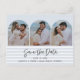 Spara datumvykorten med en strandblå rand och trebågsfoto. Den här avslappnaden kusten sparar datumet är perfekt för paret som planerar sitt bröllop. Anpassa vykortets framsida och baksida med foton och information om bröllop. För bästa resultat får du för mycket utrymme i skörd innan du överför fotot. Behöver du hjälp med att beskära och placera dina foton? Kontakta mig, jag skulle vara lycklig för att hjälpa till.