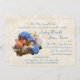 Stor konch-fullt av blomma, lök och blått vatten med sanddollar och stjärnfisk. Bröllopbjudan till elegantens träningstema.