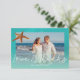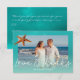 Hombre vatten blå bakgrund med halvgenomskinliga accenter och en stjärnfisk med ditt foto och tack för ditt skript skapar ett modernt vismligt bröllop på stranden tack vare ditt kort. Denna samling är perfekt för en modern strand, hav, oceanfront, kust, tropisk, nautisk eller destinationsort som kallas bröllop. Anpassa den med ditt foto (liggande) och din text!