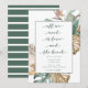 Den tropiska blommans utformning "Allt vi behöver är kärlek och stranden" sparar datumen för ditt bröllop. Söt tropiska löv och paradisblommans fågel som är tryckt i ett avslappnad- och blocktypsnitt. Anpassa med namn, datum och plats för bröllop. Spara datumet till en grönt och ett vitt rand på baksidan.
