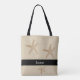 Modern Beach-bröllopspåse. Starfisk på sandsäckan färg, Mor i Groom, namn på baksidan. Du kan enkelt byta namn i bakgrunden.