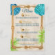 Öka din målbröllopsmiddag party med denna strandmeny som innehåller ett rep ram med nautisk knop, dekorerat med turkos, och guld sjöslingor pljukar färsk handflatan träd löv över sandbotten i struktur. Ersätt exempeltexten och platshållaren karta längst bak med en egen för att skapa en personlig. Perfekt för strandlandskap, destinationslandskap, tropiskt bröllop, bröllop, sommar-bröllop och andra havsrelaterade händelser. Besök samlingen för att se hela sviten.