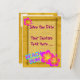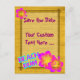En anpassningsbar Spara vykortet för datum med anpassningsbar och hibiscus blommor som läser Beach Bum lustigt och säger i nödlidande brev i ljust och havsblått färg med sandig gult kontur. Klicka på Anpassa om du vill ändra typsnitt, lägga till eller ta bort inslag och mycket mer, även spara din design för senare.