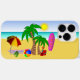 © Sunny Mars Design. Vid Mobila täcken Beach Fodral-Mate - Denna strandbum fodral har en roligt vektor för en strandscen med strandplagg, t.ex. ett strandparaply, en strand boll, flinflip flops, en hink och spade, handflatan träd, en strandduk och en ytbräda. Gör en perfekt till älskare på stranden.