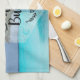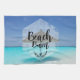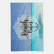 En kökshandduk med en tropisk bild av ett turkos hav med en vit sandstrand och ett enda tunt strandparaply. Typografi säger Beach Bum.
