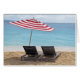 Notecard med två persikor under och röd och vit paraply på stranden i Montego Bay, Jamaica. Originalfotografi av Lianne K. Coleman