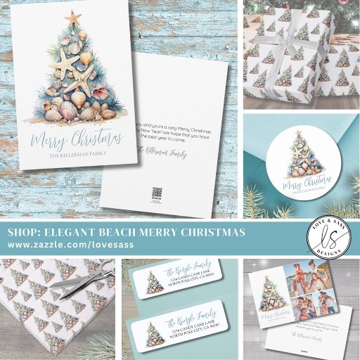 Elegant Coastal Shell Beach Merry Christmas TreeDesignad av JJ Marie