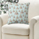 Each tree is topped with a starfish and decorated with a blend of seashells in soft blue and green hues, resting on a sandy base with a rustic watercolor style that brings charm and personality. The design appears on both sides of the pillow for a complete look. The background color is currently light blue, but you can easily change it to any color you'd like to match your holiday setup. A cozy and unique way to bring a little surf and sand to your seasonal celebrations.